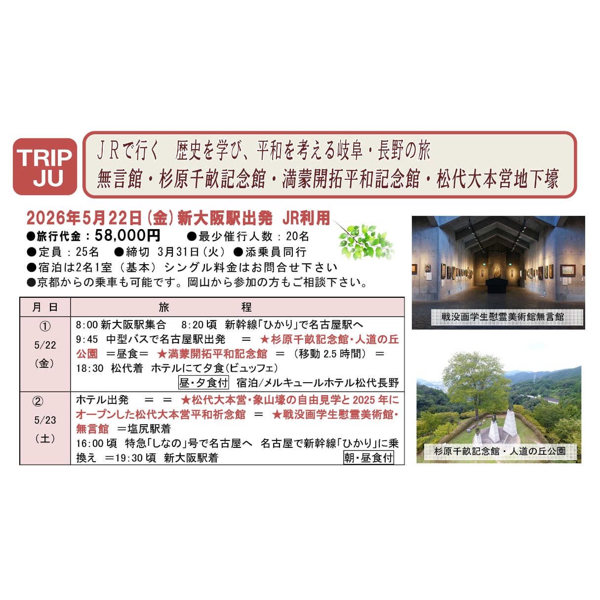 JUおすすめツアー(参加者募集中!)